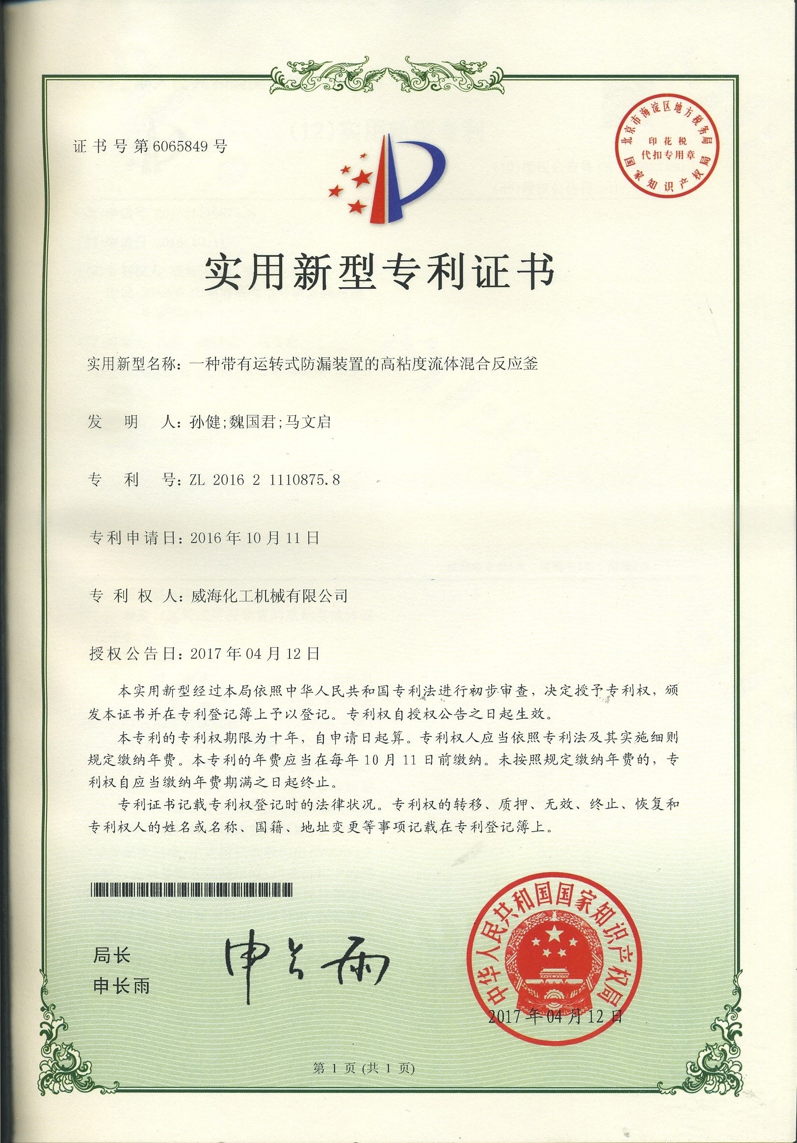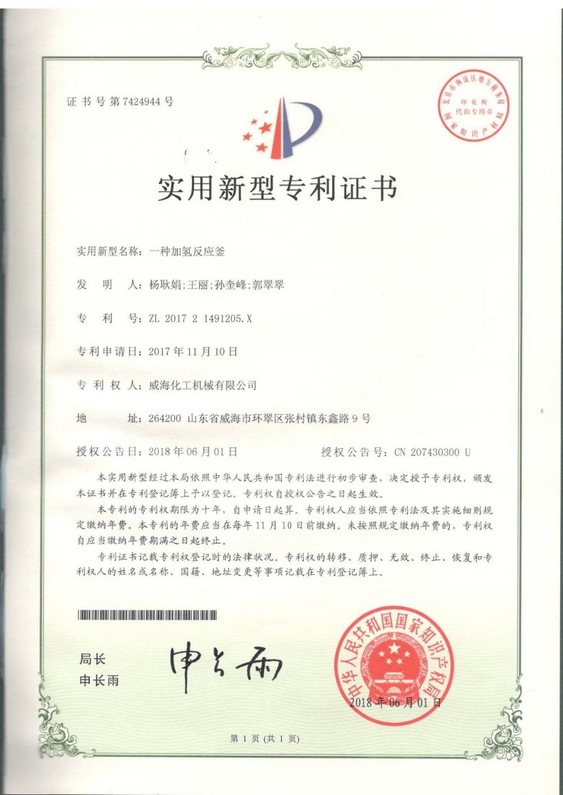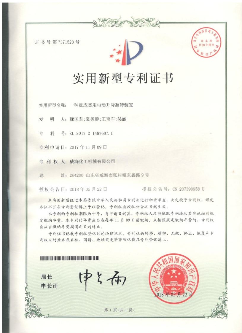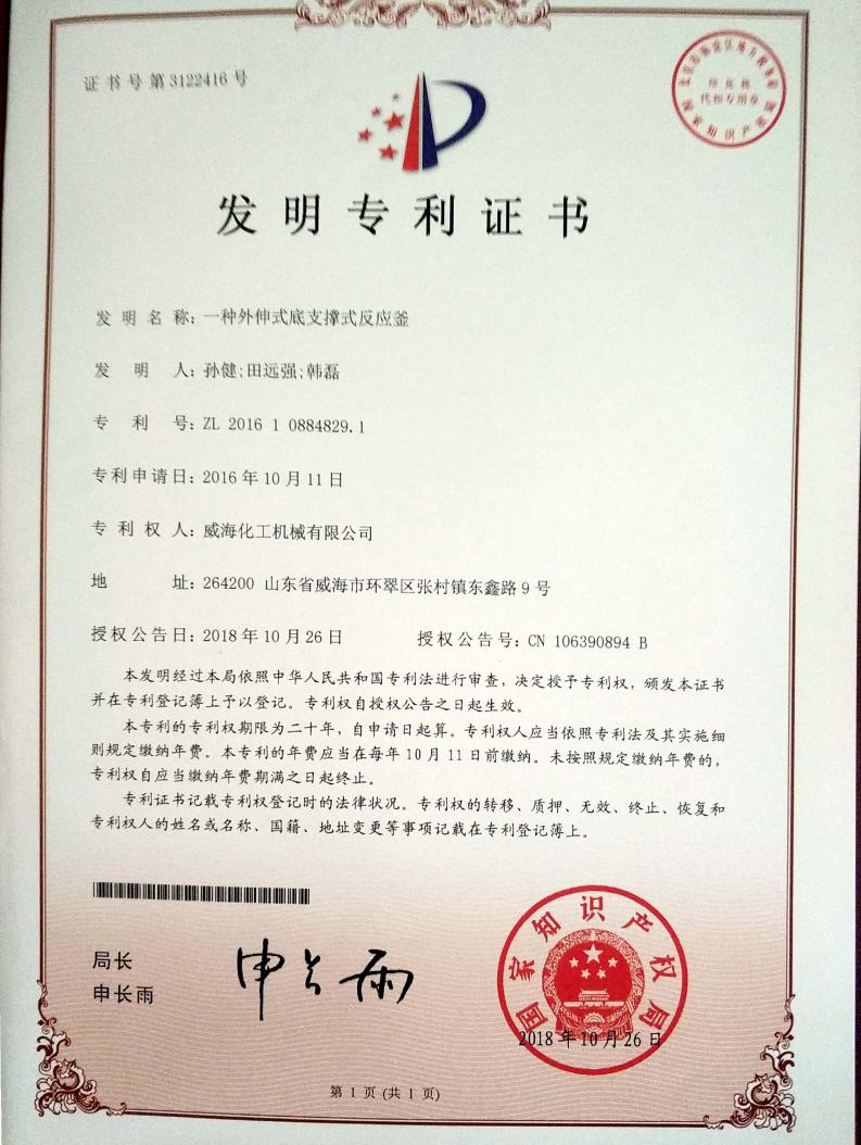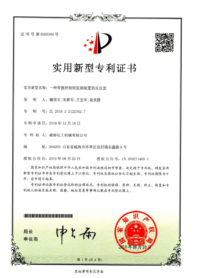 實(shí)用新型專利一種反應(yīng)釜用…