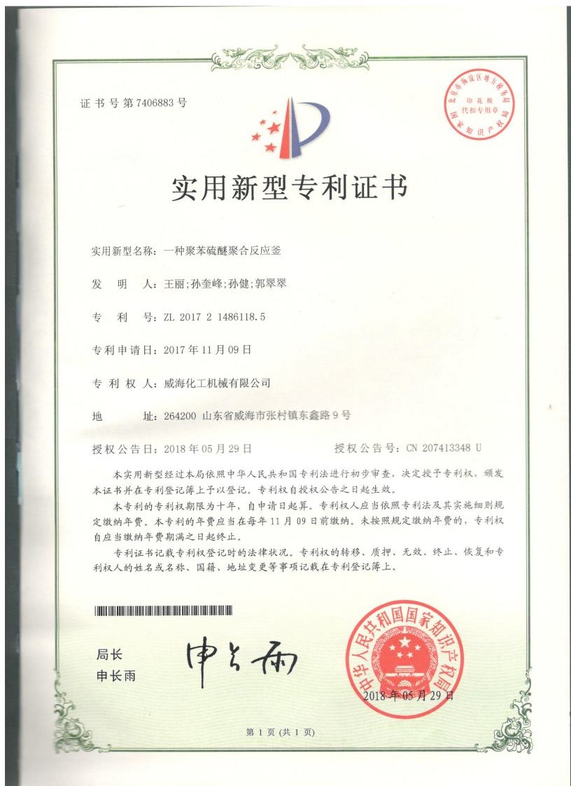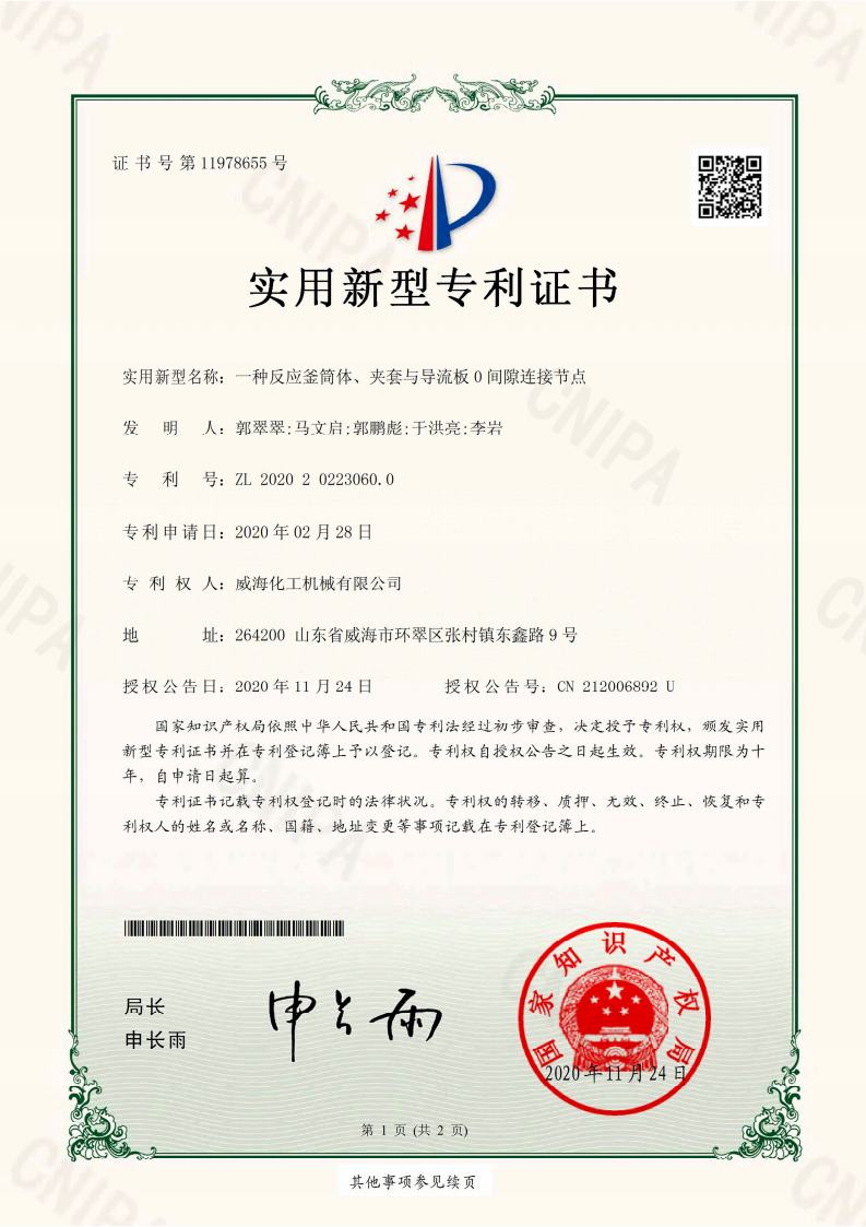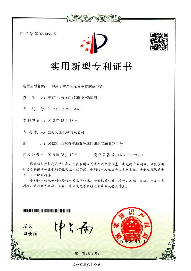 截止2024年擁有高壓反應(yīng)釜領(lǐng)域授權(quán)專利共95項(xiàng),其中發(fā)明專利19項(xiàng)、實(shí)用新型專利69項(xiàng)、外觀專利7項(xiàng),并持續(xù)在高壓反應(yīng)釜領(lǐng)域開展關(guān)鍵核心技術(shù)攻關(guān)