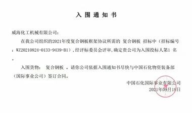 熱烈祝賀我公司連續(xù)5年入圍中石化復合鋼板框架協(xié)議